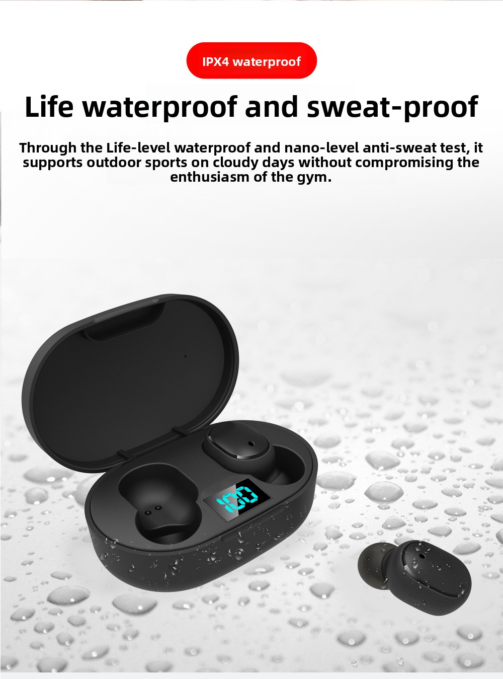 IPX7 Waterproof: Suitable for sports and outdoor activities, resistant to sweat and rain.