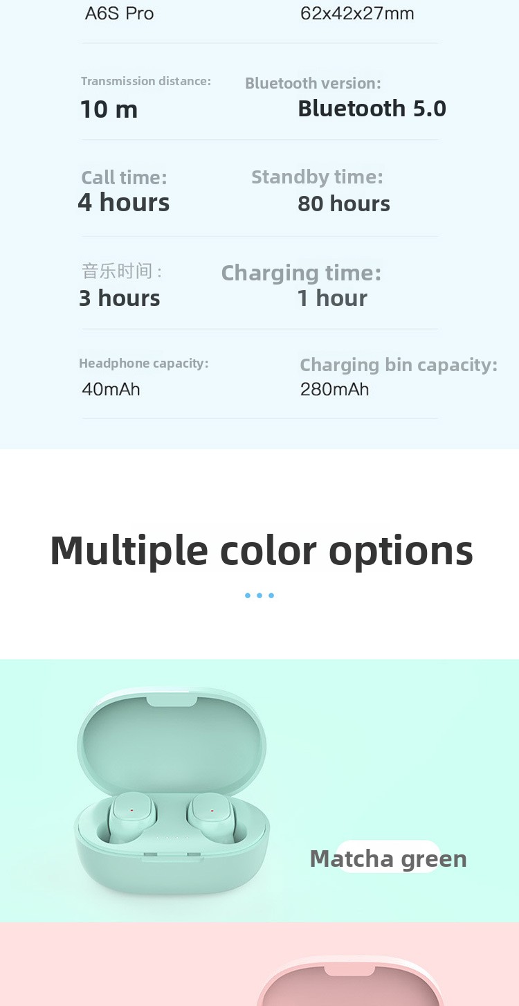 Colors Available: White, Black, Green, Pink, Blue (for A6S, E6S, E7S models)