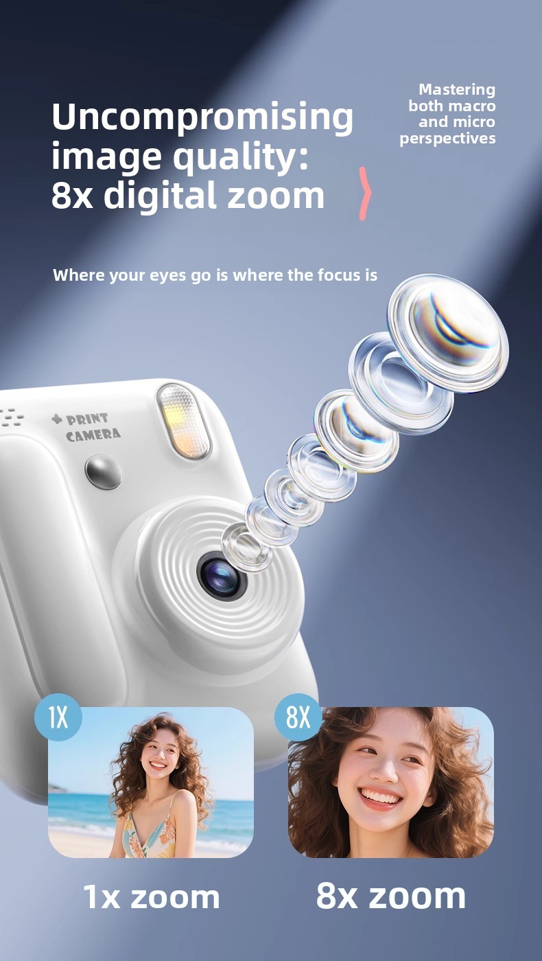Color Printing: Instantly prints colorful photos with vibrant quality.