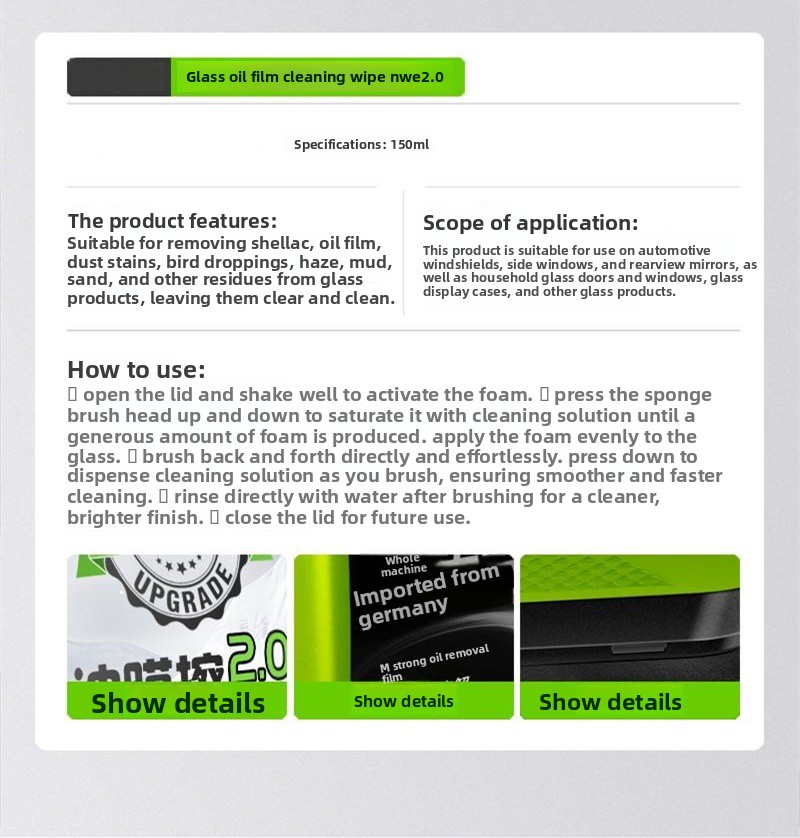 Effective Cleaning: Strong decontamination and oil removal for car windshields.