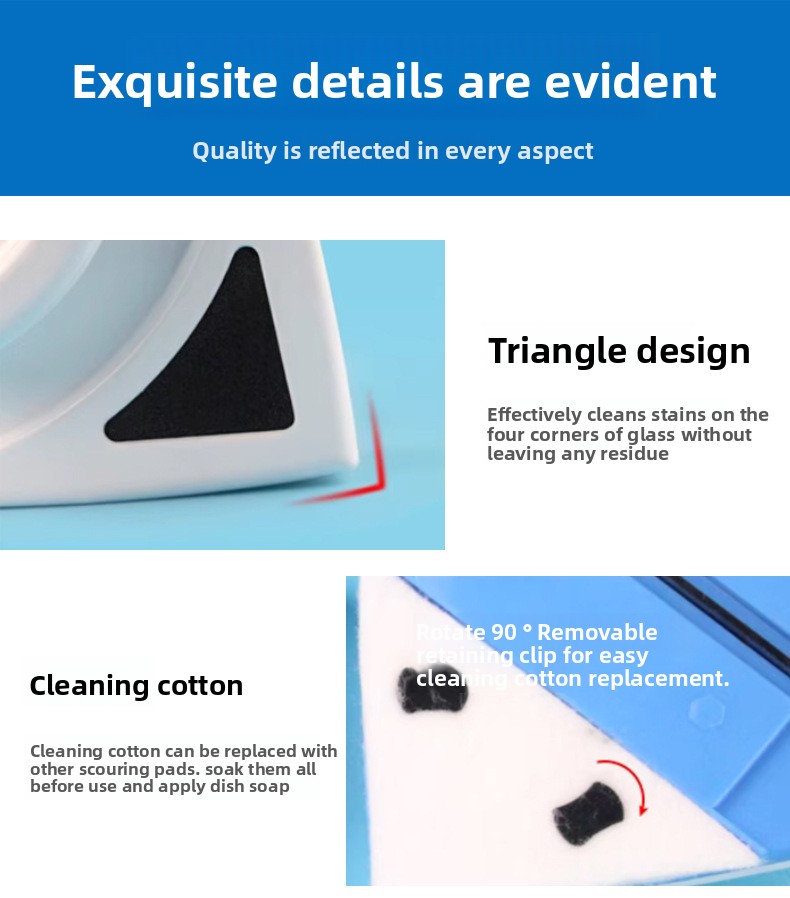 Strong Magnetic Design: Powerful magnets ensure efficient cleaning of double-pane windows.