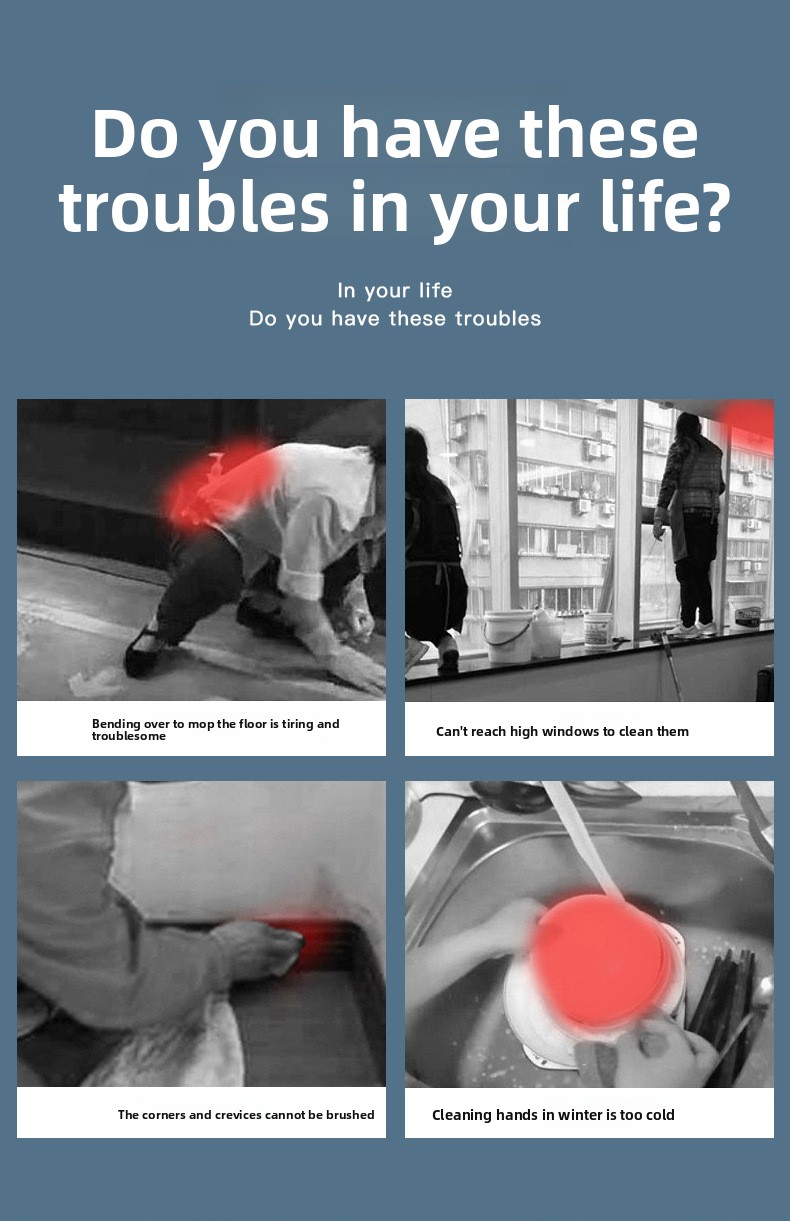 Multifunctional Cleaning: 9-in-1 design for versatile use in kitchen, bathroom, and floor cleaning.