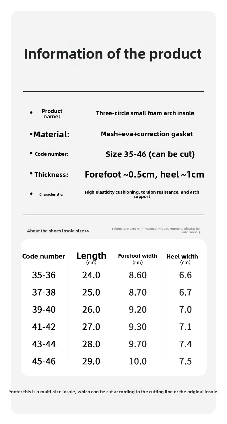 Full-Foot Design: Whole insole structure ensures comprehensive support and alignment.