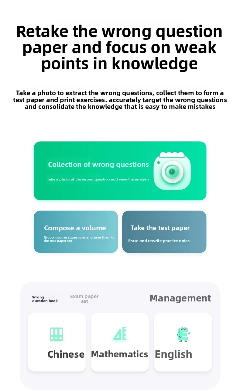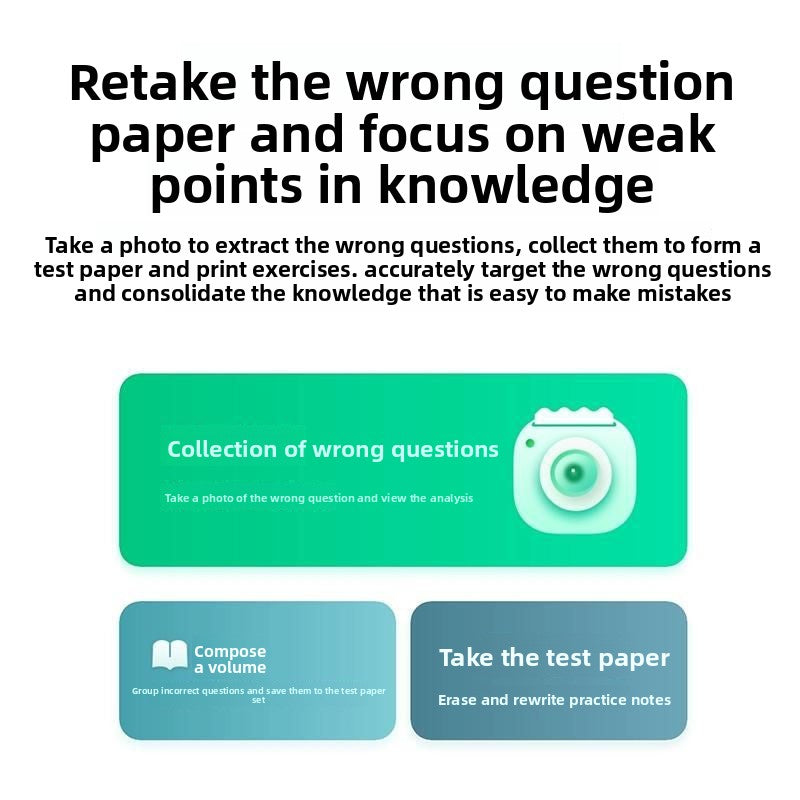 Error Question Printing: Specifically designed for printing and correcting wrong test questions.