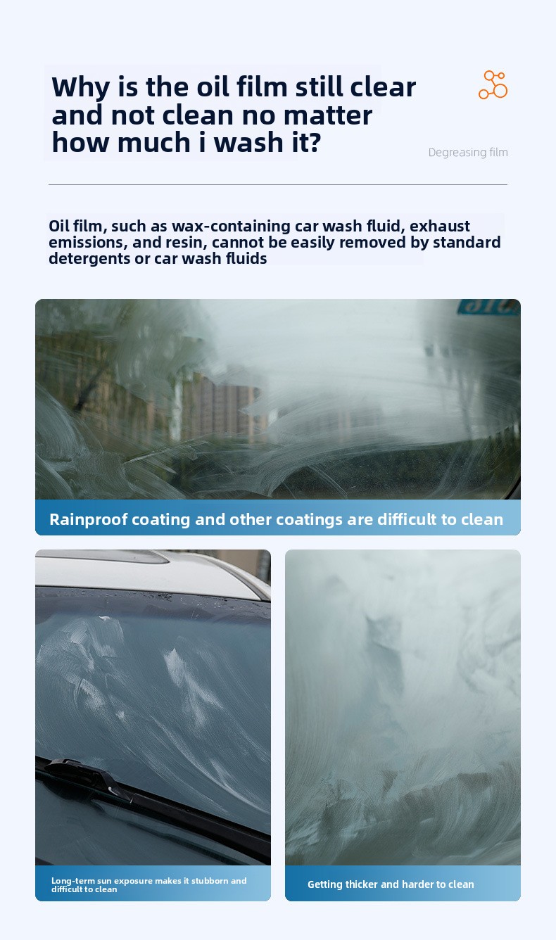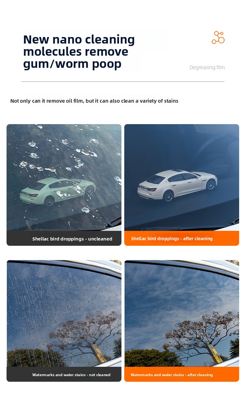 Effective Cleaning: Quickly removes oil film, bird droppings, and heavy stains from windshields.
