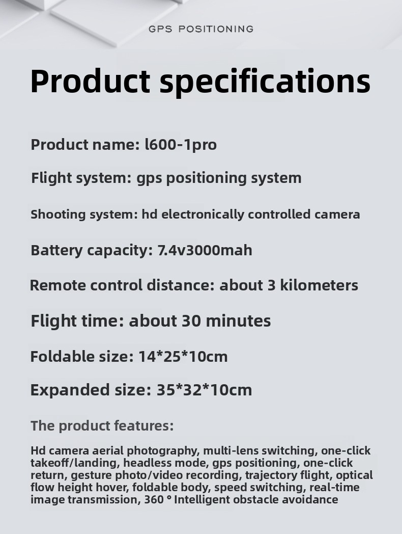 GPS Navigation: Equipped with GPS for stable flight and precise positioning.