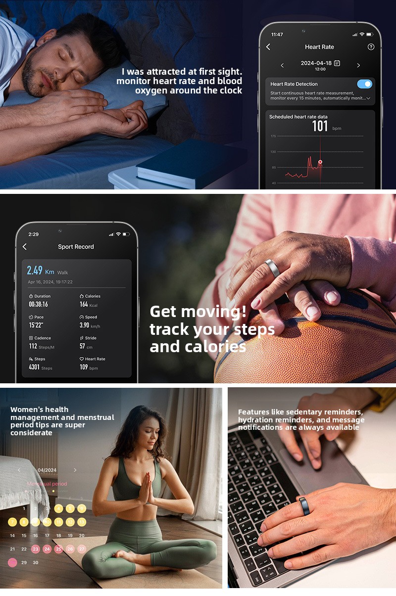Smart Health Ring with Bluetooth Body Temperature Heart Rate Blood Oxygen Sleep Tracking